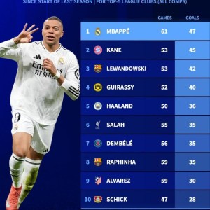 15 01月 2026 157 厉害!姆巴佩加盟皇马以来攻入47粒进球,五大联赛球员同期最多 直播吧8月26日讯 西甲第二轮比赛,姆巴佩梅开二度,帮助皇马客场3-0击败皇家奥维耶多。据德国转会市场统计,姆巴佩加盟皇... nba
